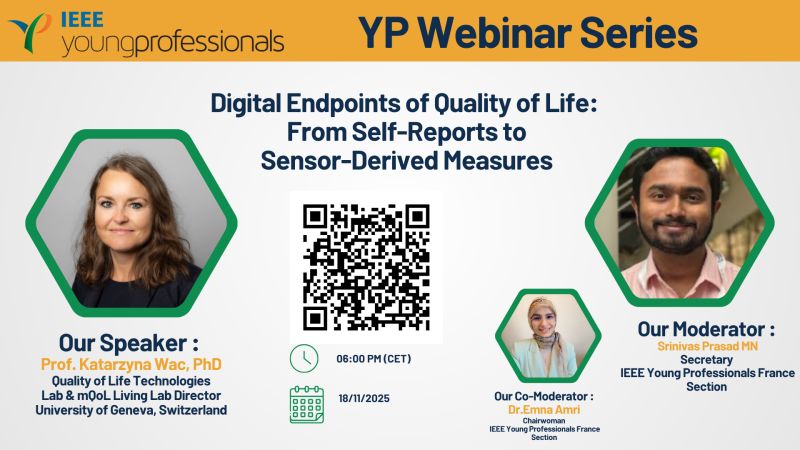 18 November 2025, Talk at the IEEE Young Professionals Webinar Series. The talk given by Prof. Wac is titled “Digital Endpoints of Quality of Life: From Self-Reports to Sensor-Derived Measures”.